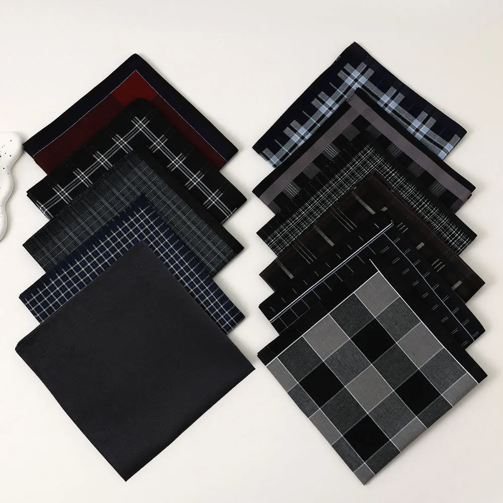 11Pcs Men's Pure Cotton Handkerchief Classic Yarn-dyed Plaid Old-fashioned Thin Absorbent Sweat Towel Stylish and Elegant