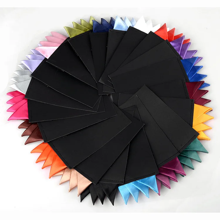 Men's Pre-folded Pocket Square Candy Color Silk Handkerchiefs Formal Wedding Party Business Chest Towel Hanky Black White Red