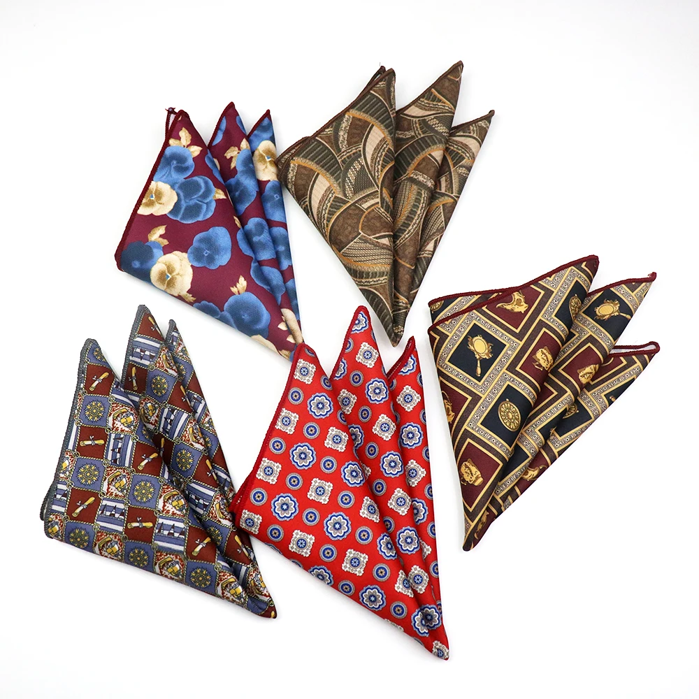 27cm Retro British Style Brown Pocket Square Animal Flower Printed Polyester Handkerchief For Men Towel Formal Suit Tuxedo Hanky