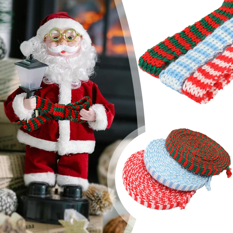 3M/Roll New Year Red Green Blue Knitting Polyester Ribbon Chrismas Tree Wine Bottle Decor Mini Doll Scarf DIY Craft Gift Packing