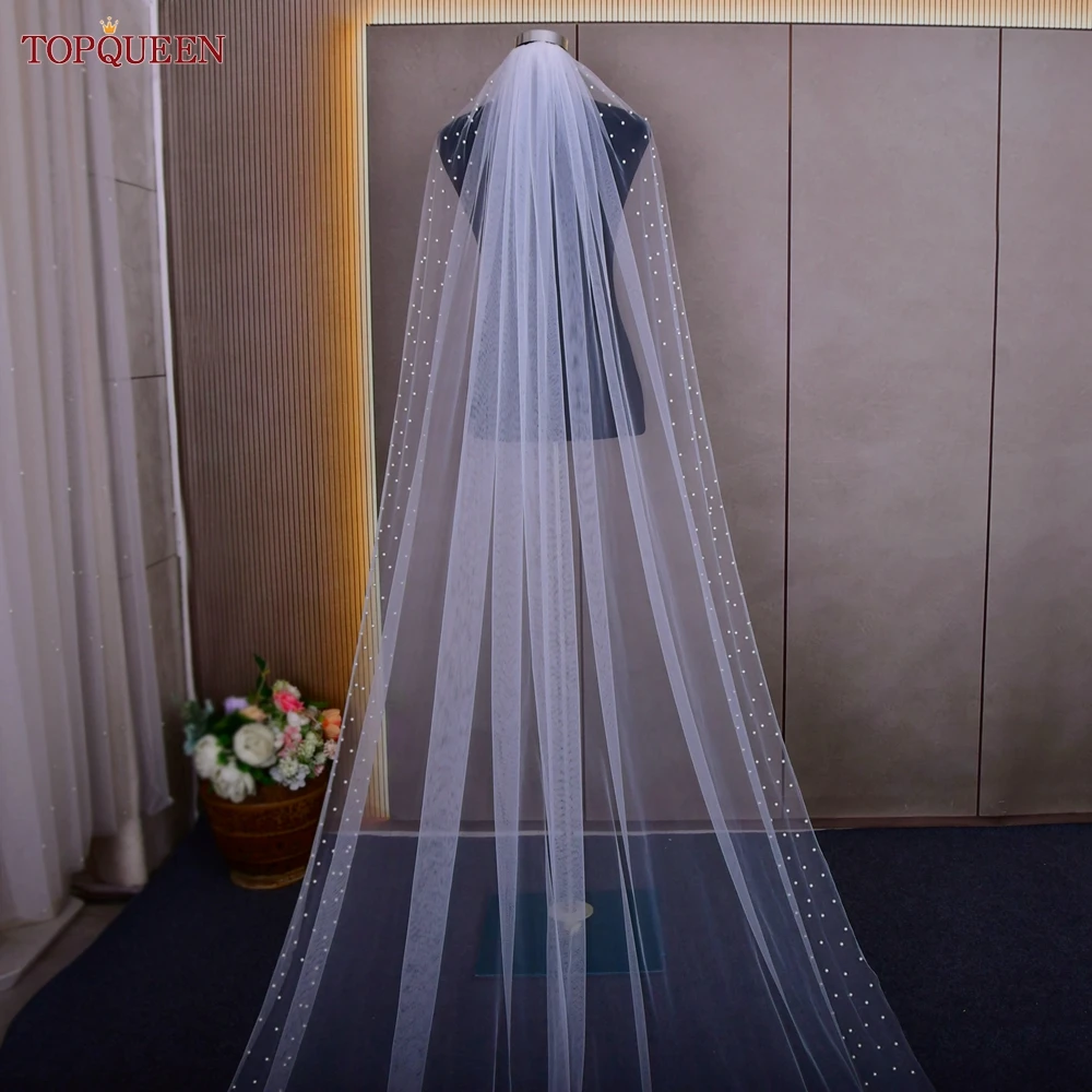 TOPQUEEN Pearls Wedding Veils with Comb Bridal Veil Type Layer Dramatic 1 Tier Pearl Veil Bridal Veils Bead Wedding Veil V157