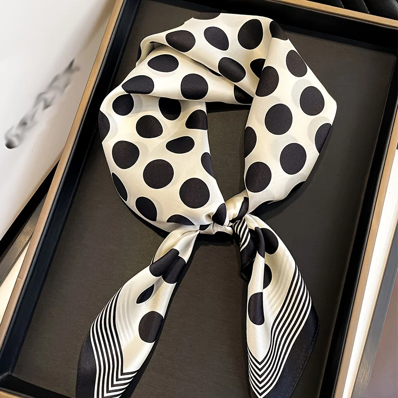 27" Black White Polka Dot Square Scarf Elegant Style Thin Silky Neck Scarf Casual Decorative Hairband For Women