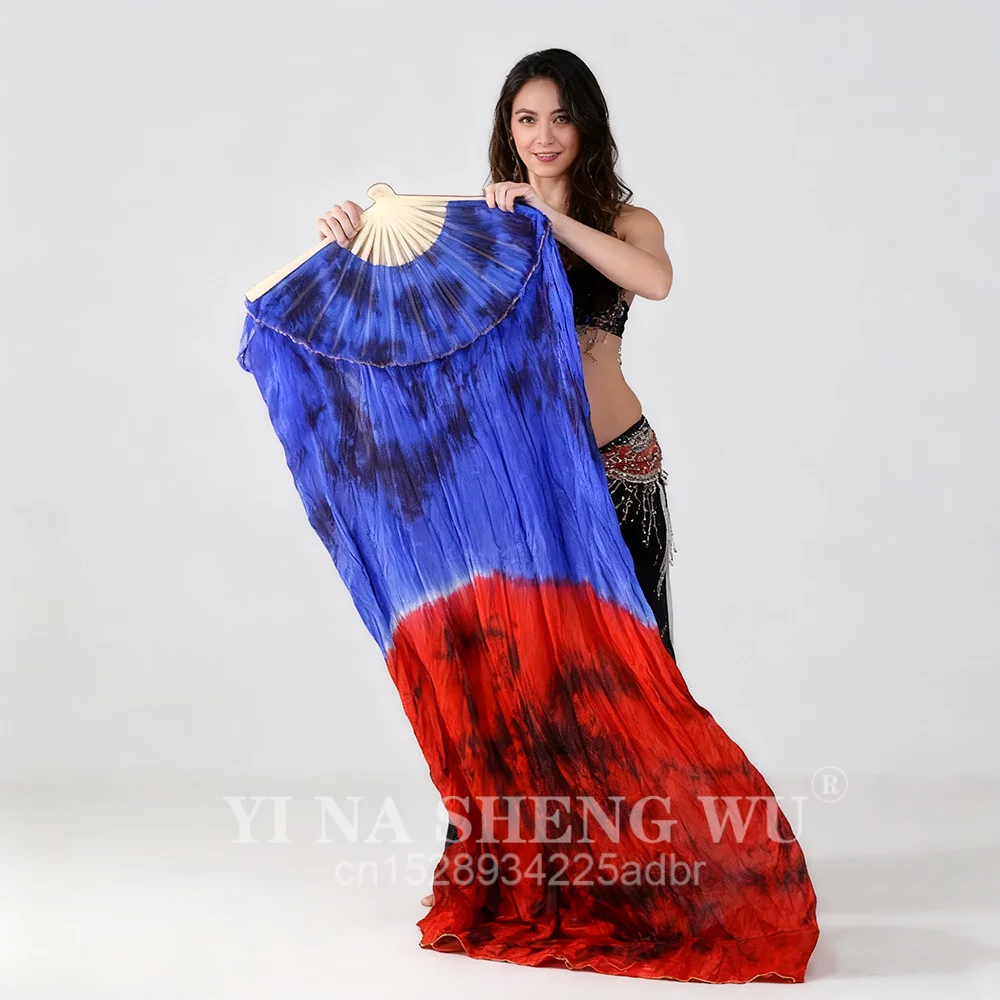 High Selling 100% Real Silk Veils Dancing Fans 1 Pair Handmade High Quality Silk Belly Dance Fans Black+Red+Green Colors