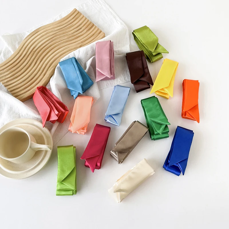 4x100cm Satin Silk Narrow Scarf Neckerchief Solid Neck Scarves Long Silk Thin Scarf Tie Black Bag Ribbon Headbands Choker