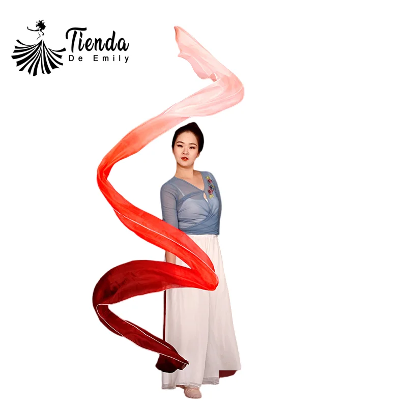 Dance Streamer Gymnastics Dancer Ribbons Bellydance Real Silk Veil Throw with Rod for Talent Shows Ballet Artistic Dancing Skate