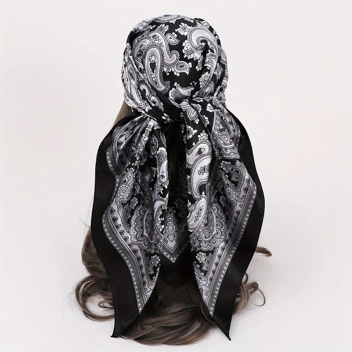 Classic Paisley Print Square Scarf Soft Satin Bandana Vintage Windproof Head Wrap Casual Shawl Imitation Silk Travel Beach Towel