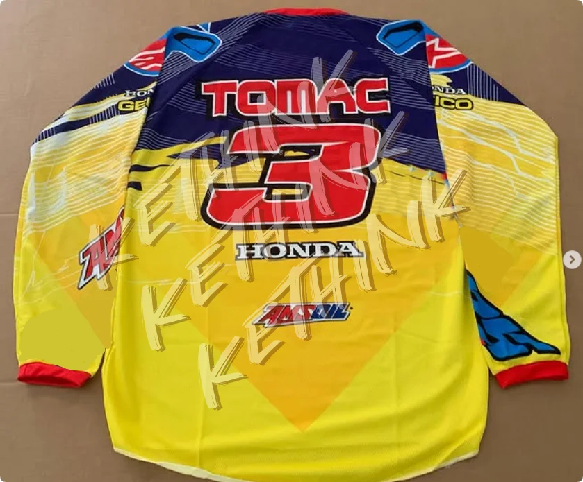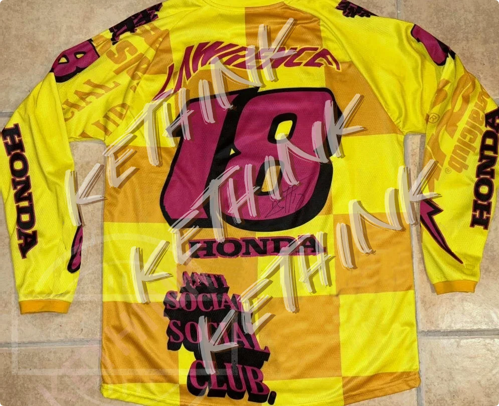 Jett Lawrence #18 Custom Yellow Honda Jersey Vintage 80s Moto jersey, Y2K Breathable Riding Shirt for Dirt Bike Mountain Racing