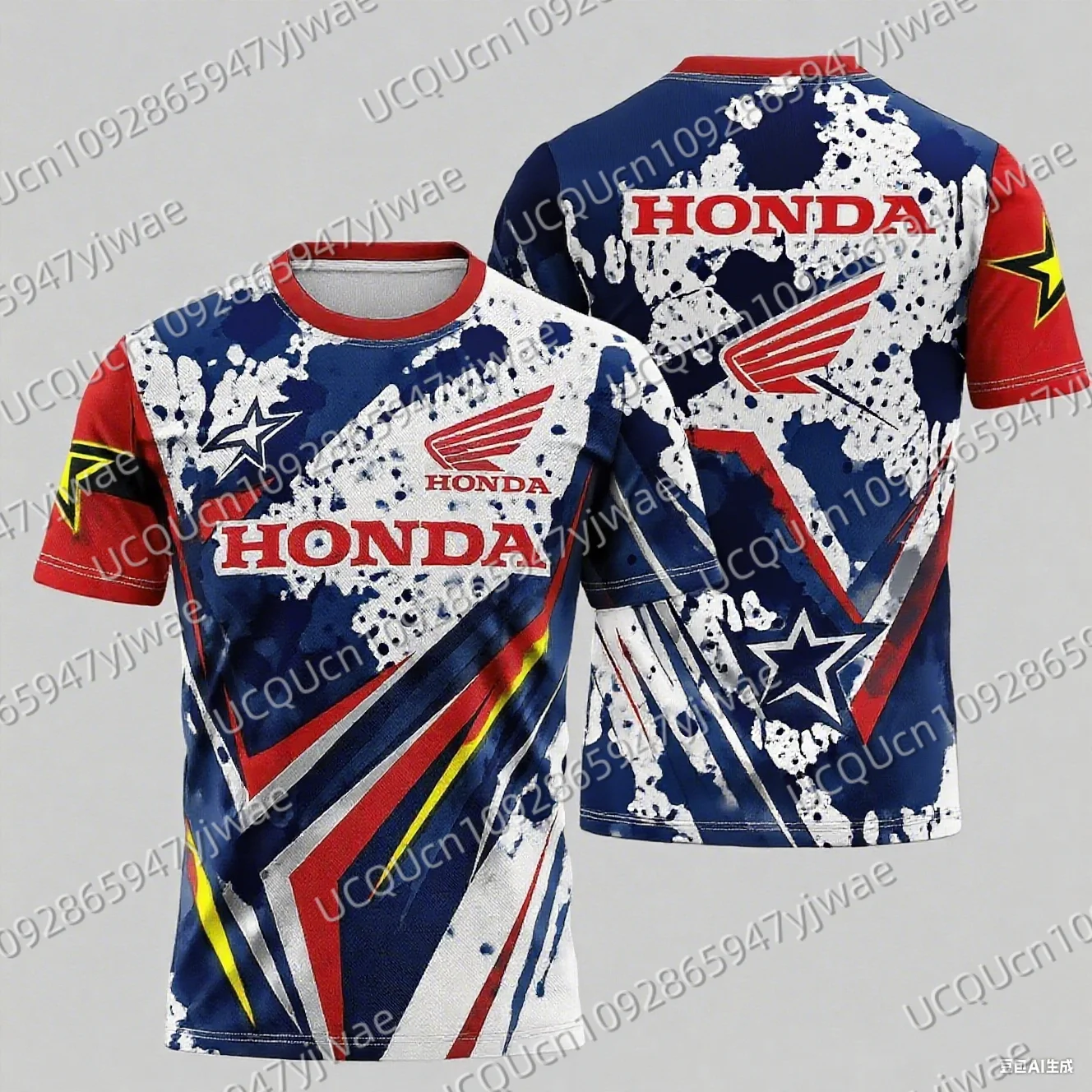 Motorcycle Riding Splashed Ink Printing Quick Drying Breathable Short Sleeve Men And Women Honda Riding Casual T-shirt Tops