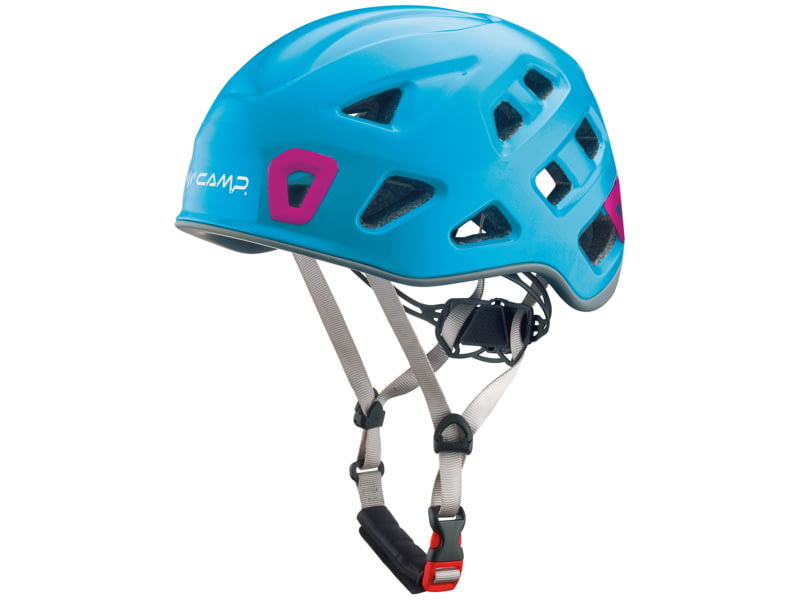 C.A.M.P. Storm Helmets Light Blue/Fuchsia Small 2457S10. A.M.P. Storm Helmets. Crafted out of in-mold EPS and a polycarbonate shell these Helmets by C.A.M.P. are designed to withstand drops and other rough landings thanks to the high-impact rating....  Read more