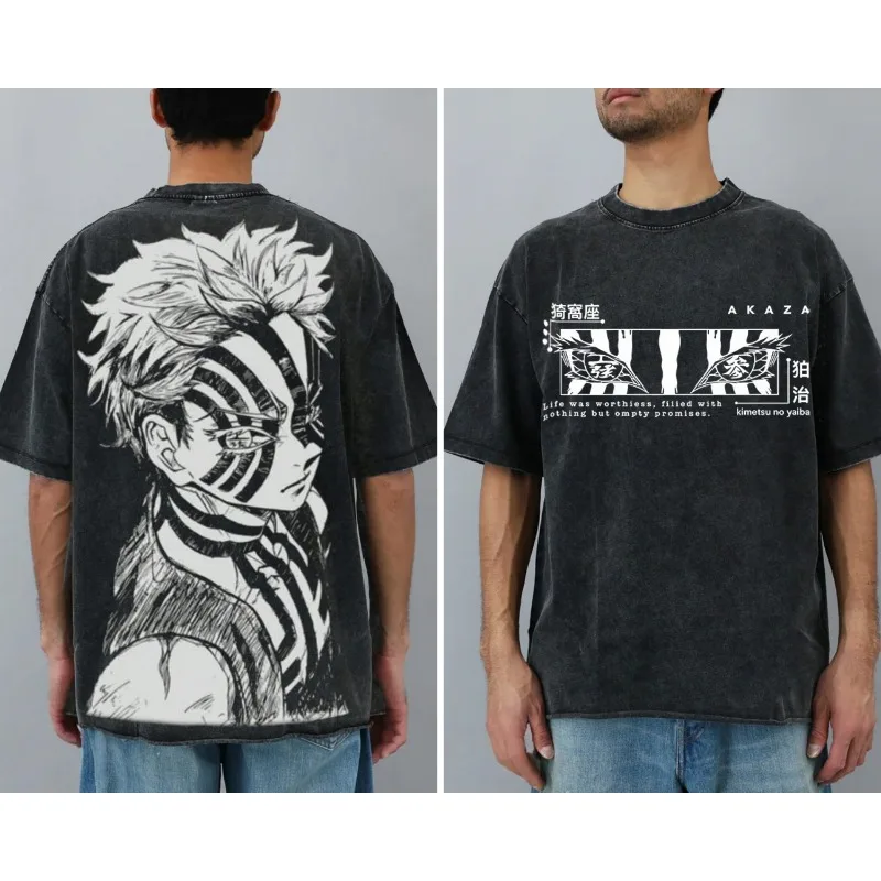 Japanese Anime Demon Slayer Akaza Graphic Washed T-shirts Women’s Men's Clothing Harajuku Y2K Oversized Cotton Half-sleeve Tops  Read more