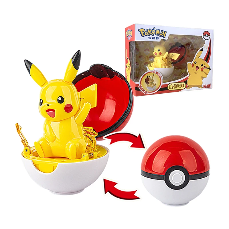Hot Sale Pokemon Transformation Pokeball Pikachu Bulbasaur Meowth Eevee Toy Scalable Anime Figure Doll Model Ornaments Kids Gift