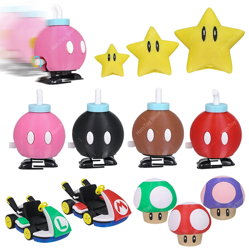 3D Printed Kirby Goomba Bob-omb Clockwork Walkable Anime Action Mario Mushroom Karting Car Figure Model Toy Birthday Gift