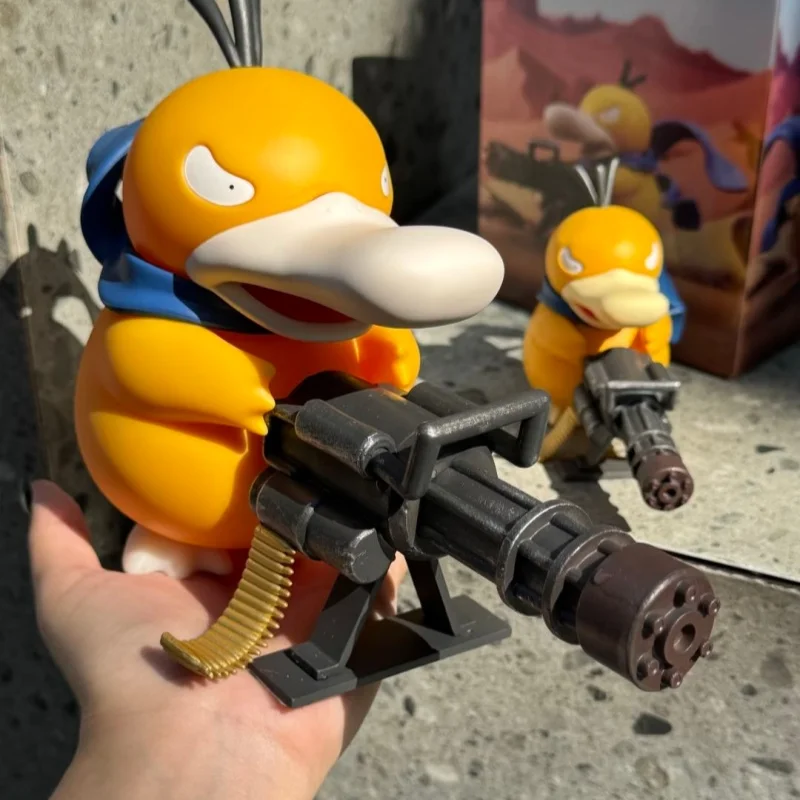 Pokemon Psyduck Gatling Gun Anime Figure Cross Dressing Toys PVC Statue Model Collection Decor Creative Peripheral Birthday Gift