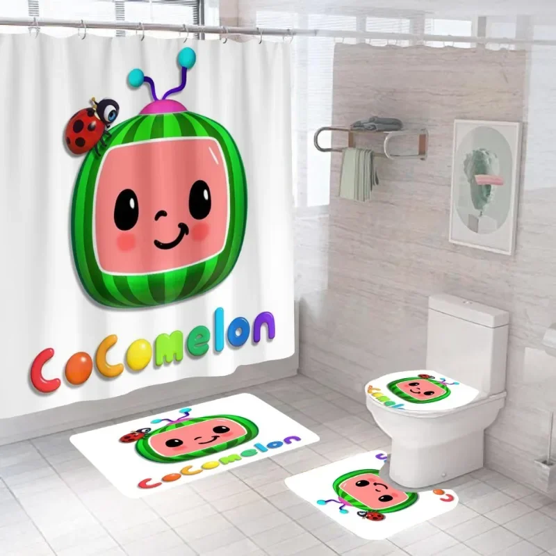 Cocomelon Shower Curtain 4pcs/set Anime Shower Curtain Carpet Mat Toilet Mat Floor Mat Sets Kawaii Bathroom Decoration