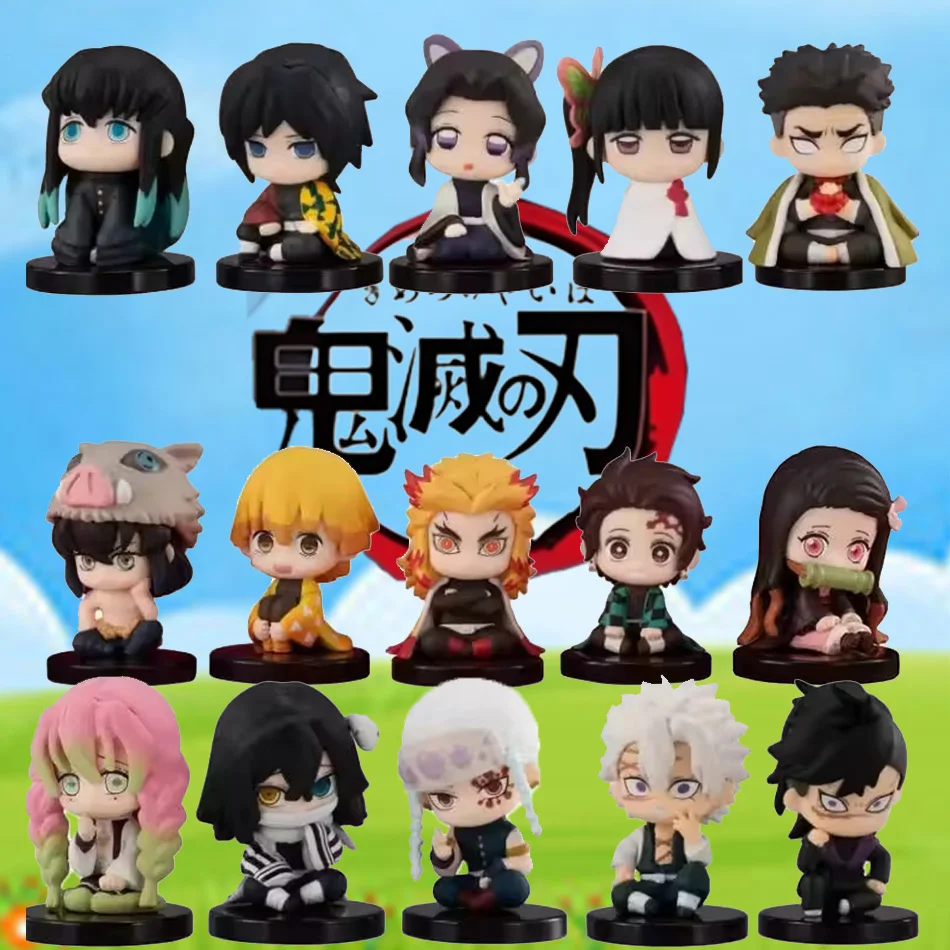 Demon Slayer Anime Figure Toy - Kimetsu No Yaiba Q Version Collectible - Sitting Tanjiro Nidouzi Inosuke Zenizu Model Doll Gift