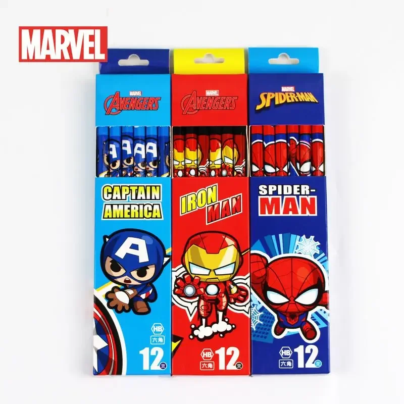 Marvel Spiderman pencil 3 box set The Avengers student pencil with eraser stationery all-in-one school supplies Peripheral gift
