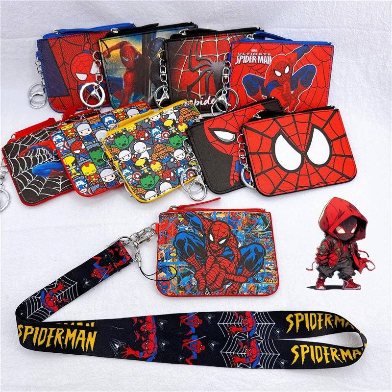 Marvel Spider-Man Card Holder Coin Case with Lanyard Cartoon Zipper Card Cover Bag Anime Card Wallet Pocket with Neck Lanyard