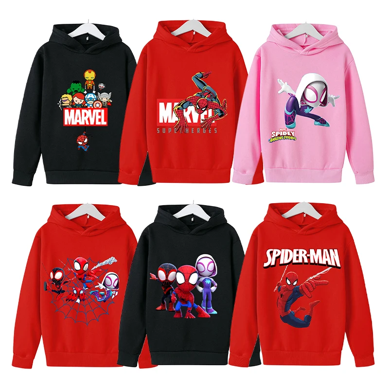 Spiderman Marvel Children's Thicken Hoodie Sweatshirt Toddler Warm Movie Cartoon Long Sleeve Kids Fleece Hooded Clothes Pullover