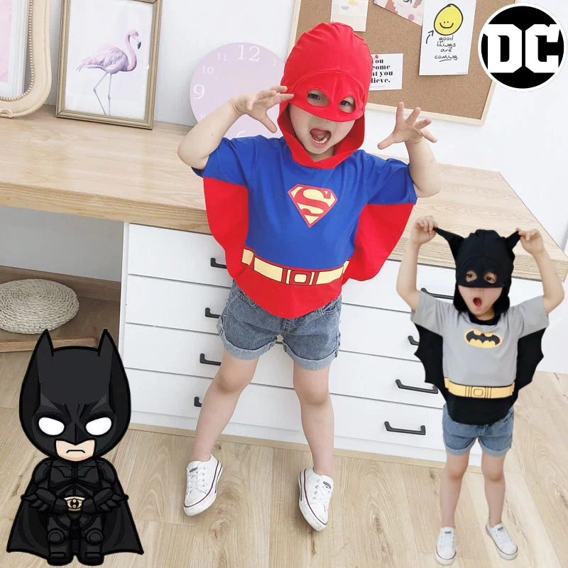 BeastKingdom DC Superman Batman Kids Creative Cartoon Pattern Hooded T-Shirt Casual Comfortable Soft Skin-friendly Short Sleeves