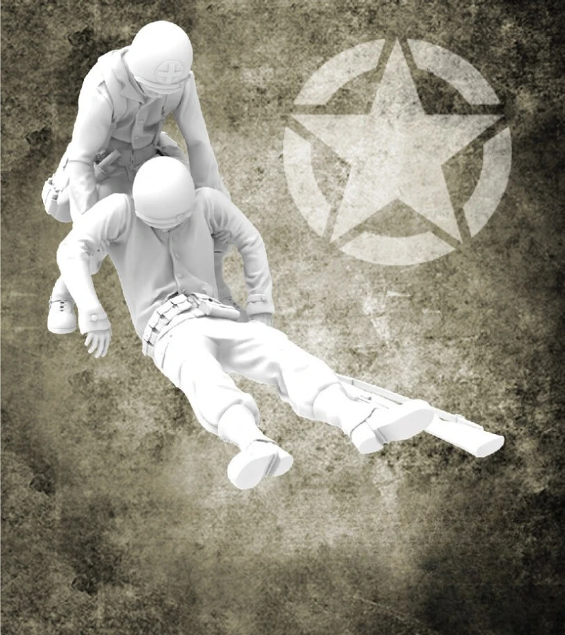 1/35 Scale Die-Cast Resin Figure Model Kit WWII US Wounded Soldiers 2 Figures Unassembled and Unpainted