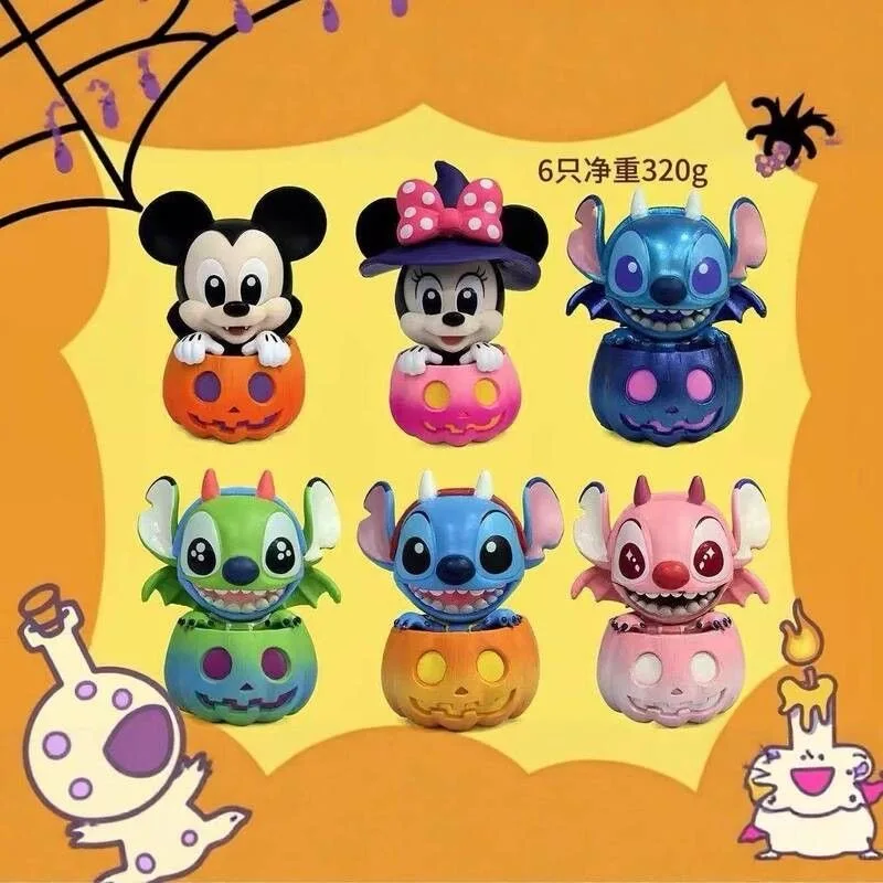 2025 Disney Stitch Blind Box Mickey Mouse And Stitch Friends Pumpkin Series Figure Halloween Dress Up Doll Decorate Toy Gift