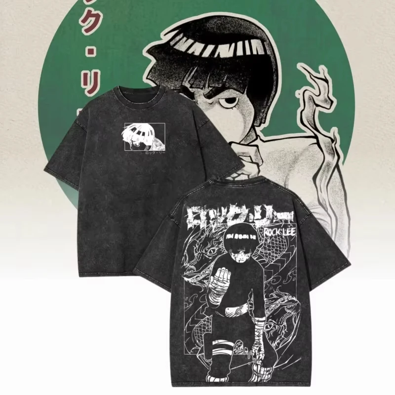 ROCK LEE Retro Naruto Super Large Washed Anime Printed T-shirt for Men and Women Summer Short Sleeves Street Wear Cotton Top  Read more