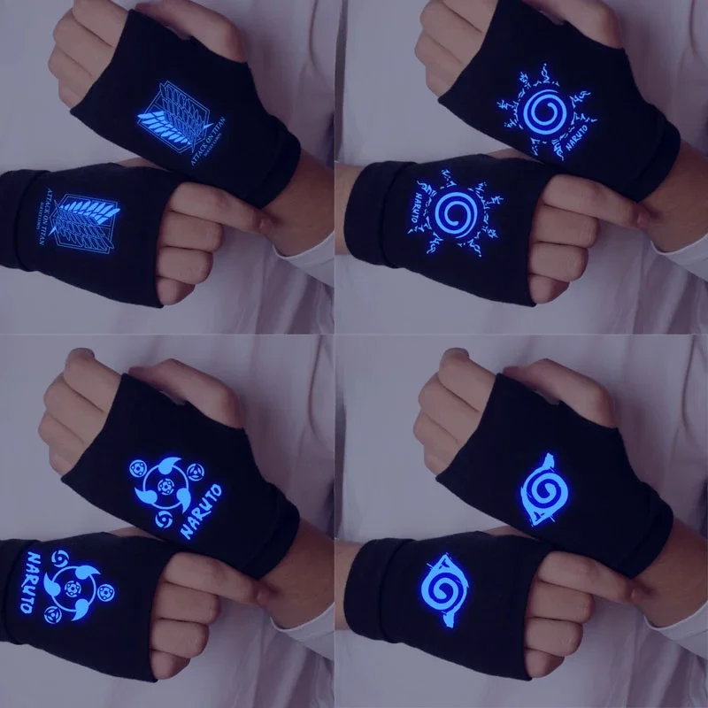 Anime Naruto Luminous Gloves Konoha Uchiha Itach Cosplay Cotton Gloves Fingerless Warm Wrist BIcycle Gloves Child Christmas Gift