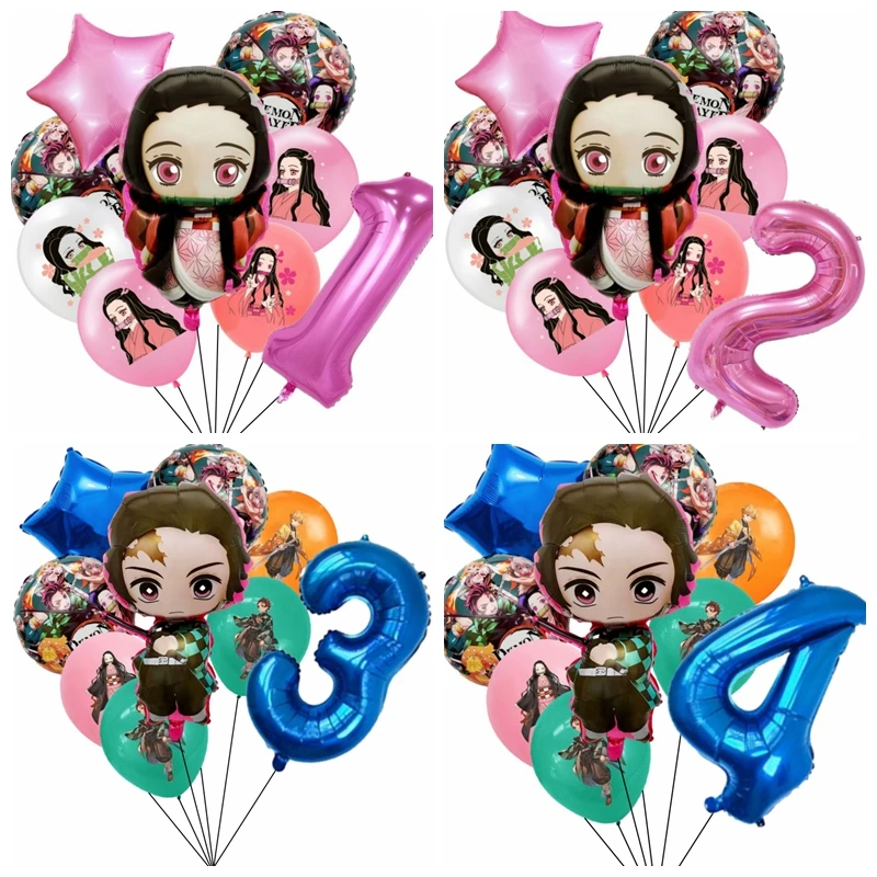 9Pcs Demon Slayer Balloons Cartoon Kamado Tanjirou Nezuko Figure Foil Globos Decoration Supplies Kids Birthday Party Gift Toy