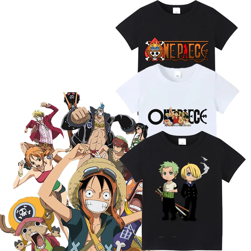ONE piece T-Shirt For Children Luffy Zoro Cotton Q Version Paint Boys Anime Clothes Trendy Print Short Sleeve Soft Clothing Gift