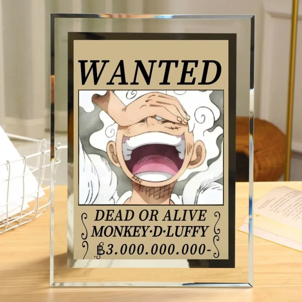 20cm Anime One Piece Monkey D. Luffy Wanted Poster Crystal Glass Frame Unique Collectors Gifts Customizable patterns