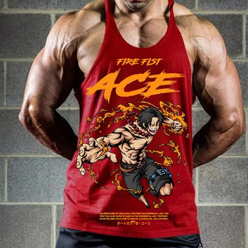 ONE-PIECE Ace PrintingSleeveless Sweatshirt Men's Singlets Gym T-shirts Suspenders Top Fitness Bodybuilding Shirt Clothing Vest