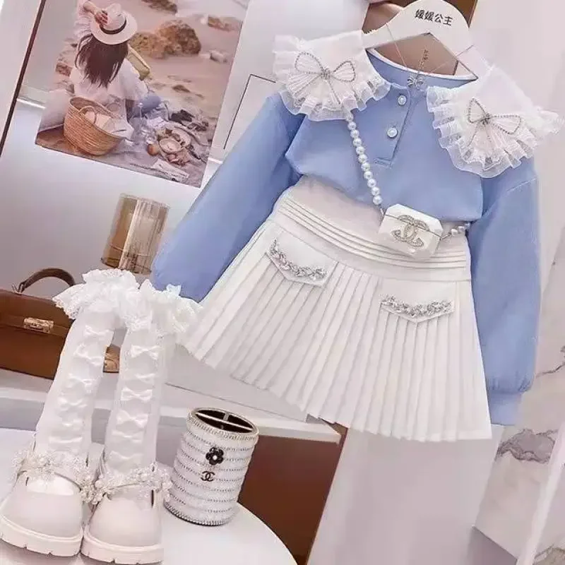Fashion Baby Girl Princess Clothes Set Bow Lace Sweatshirt Sequins Skirt Child Clothing Suit Party Birthday Baby Clothes 3-14Y