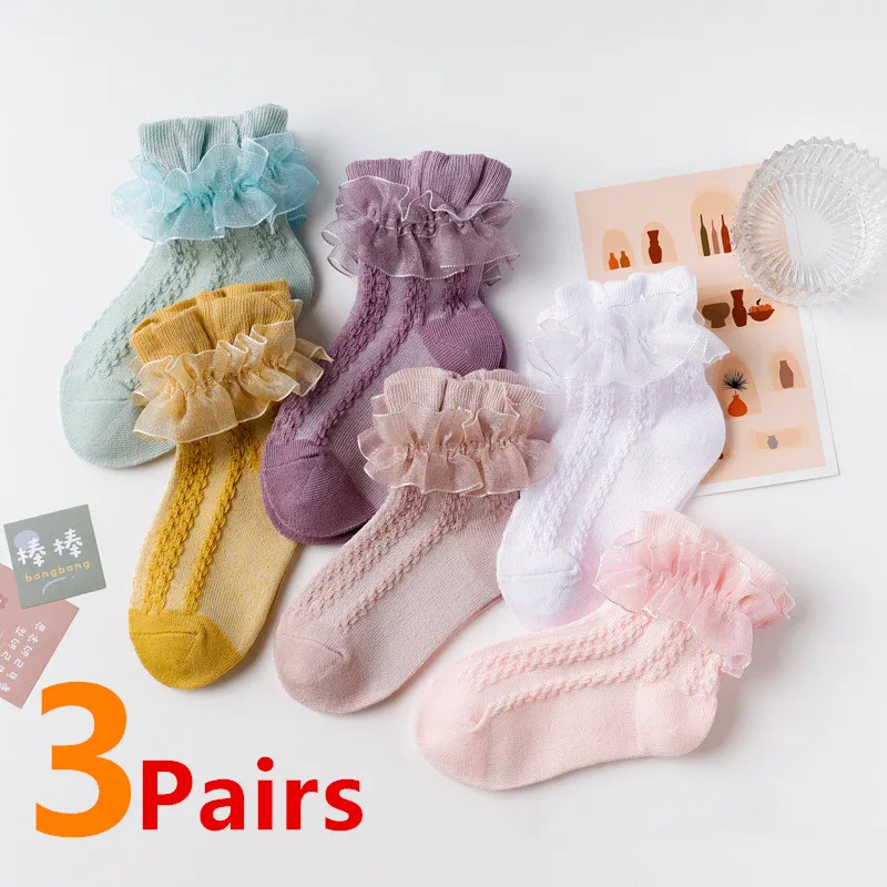 Cotton Lace Ruffle Princess Mesh Breathable Socks Children Ankle Short Sock White Pink Purple Baby Girls Kids Toddler Dancing