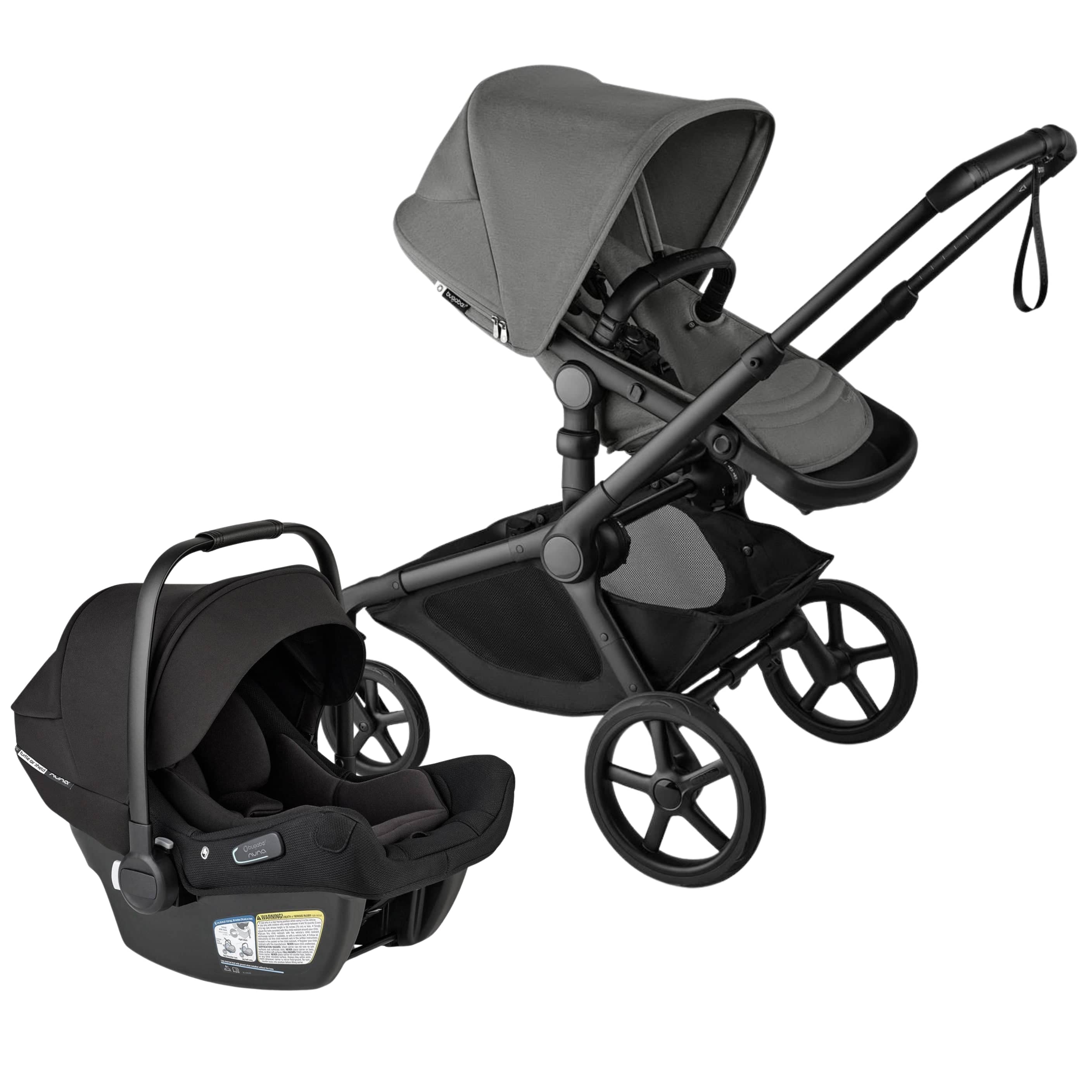 Bugaboo Kangaroo Complete Stroller + Turtle Air Shield By Nuna Travel System Bundle - Black / Moon G