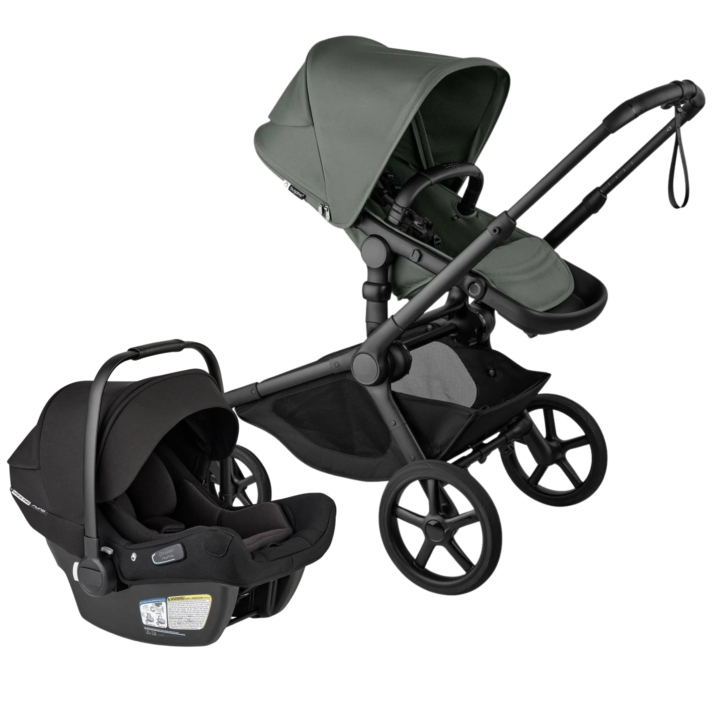Bugaboo Kangaroo Complete Stroller + Turtle Air Shield By Nuna Travel System Bundle - Black / Forest