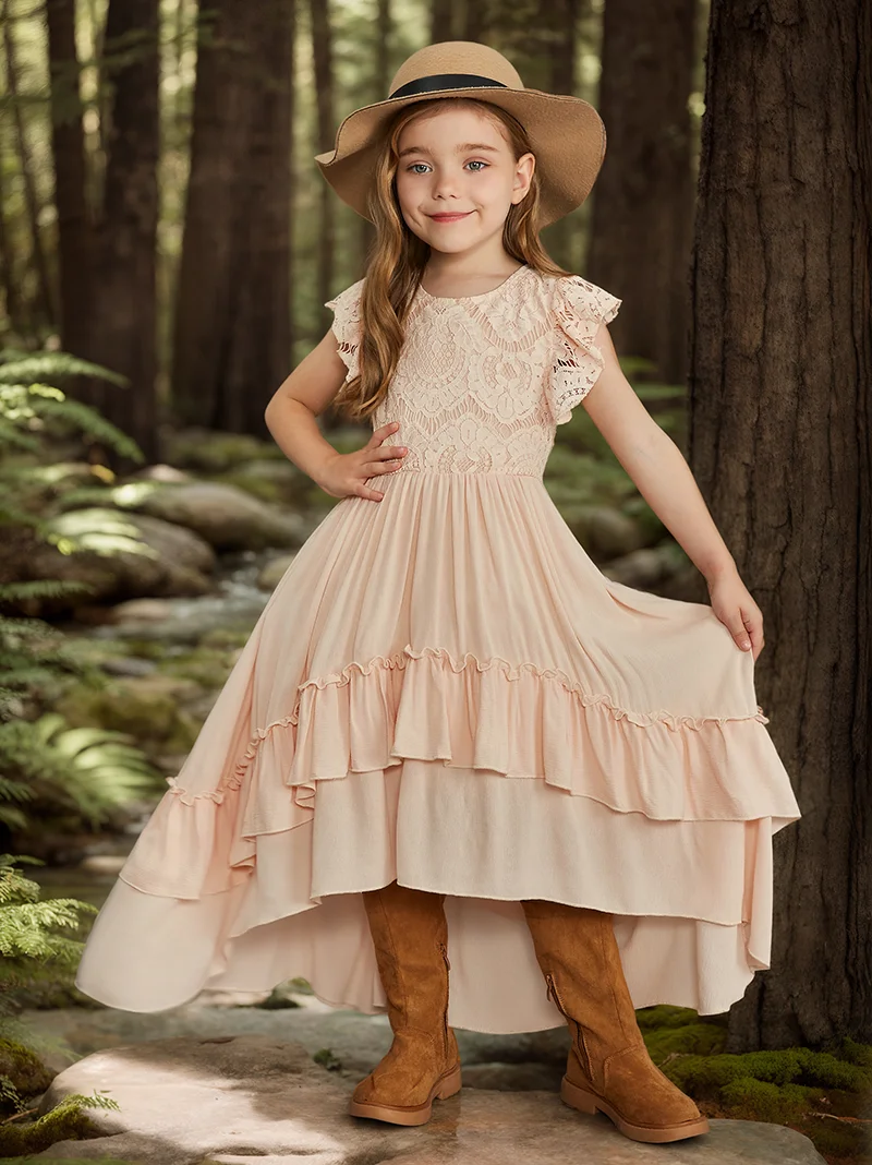 Flower Girls Dress Baby Kids Lace Dress Baby Kids Bohemia Elegant Princess Party Vestidos Costumes CHildren Clothing for 3-12y