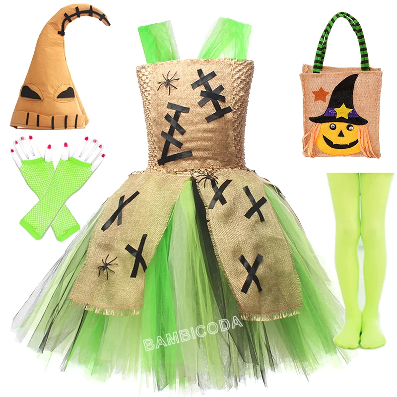 2025 New Oogie Boogie Costume For Baby Girl Lace Dress Sling Party Frock Hat 2pc Set Festive Tunic Halloween Dress Up