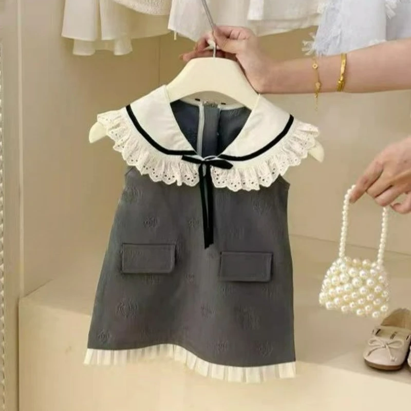 Spring Autumn Toddler Girls Vintage Pinafore Jumper Dress Fall Floral Lace Trim New Chic Princess Outerwear