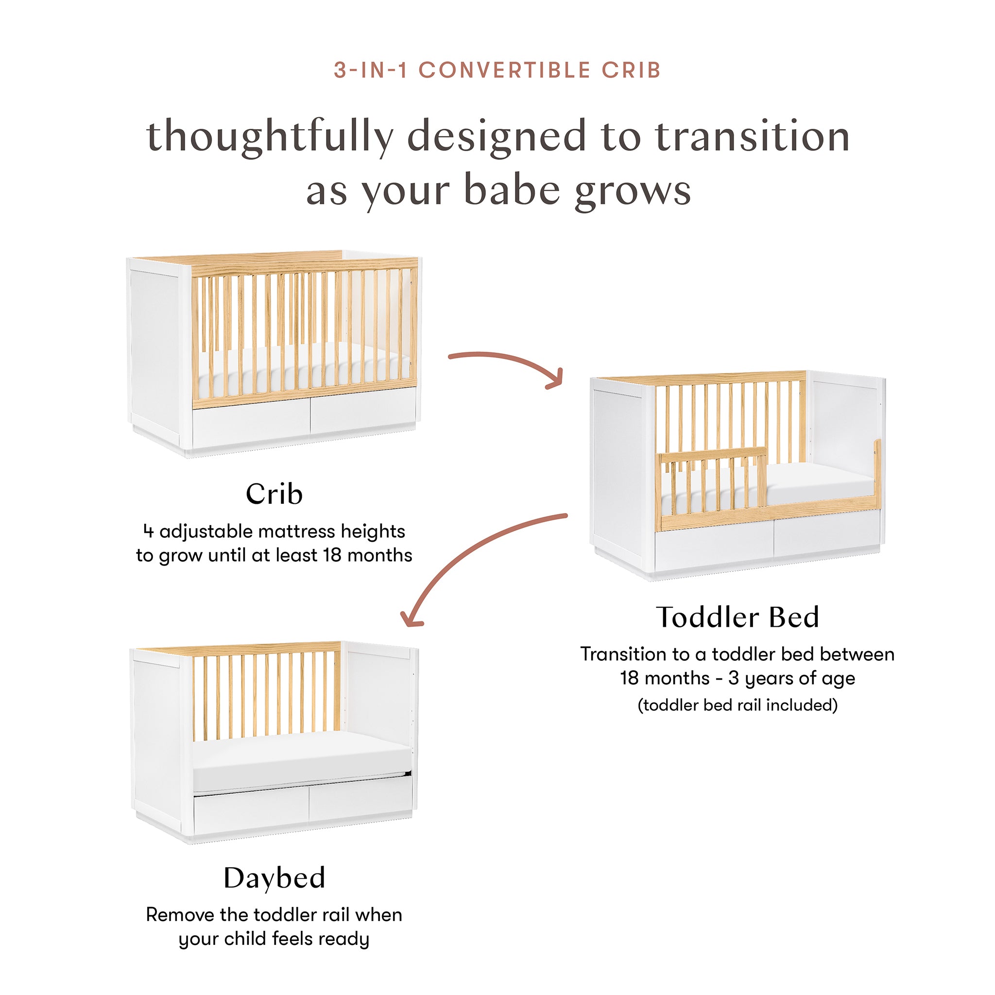 Babyletto Bento 3-in-1 Convertible Storage Crib w/Toddler Bed Conversion Kit - White / Natural