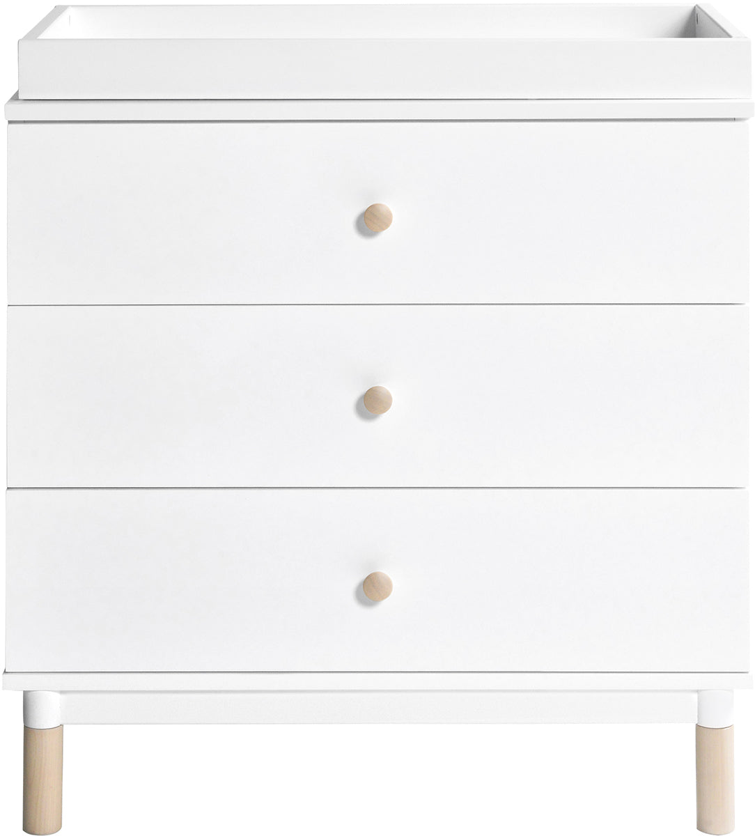 Enjoy the playful modern design of the Lolly 3-Drawer Changer Dresser! With natural curves and delicate natural feet that compliments the Lolly 3-in-1 Convertible Crib. Designed especially for the nursery with an included removable changing tray, ...