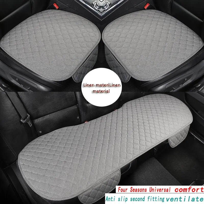 Linen Quilted Embroidered Car Cushion Without Backrest Four Seasons Universal Three-piece Set