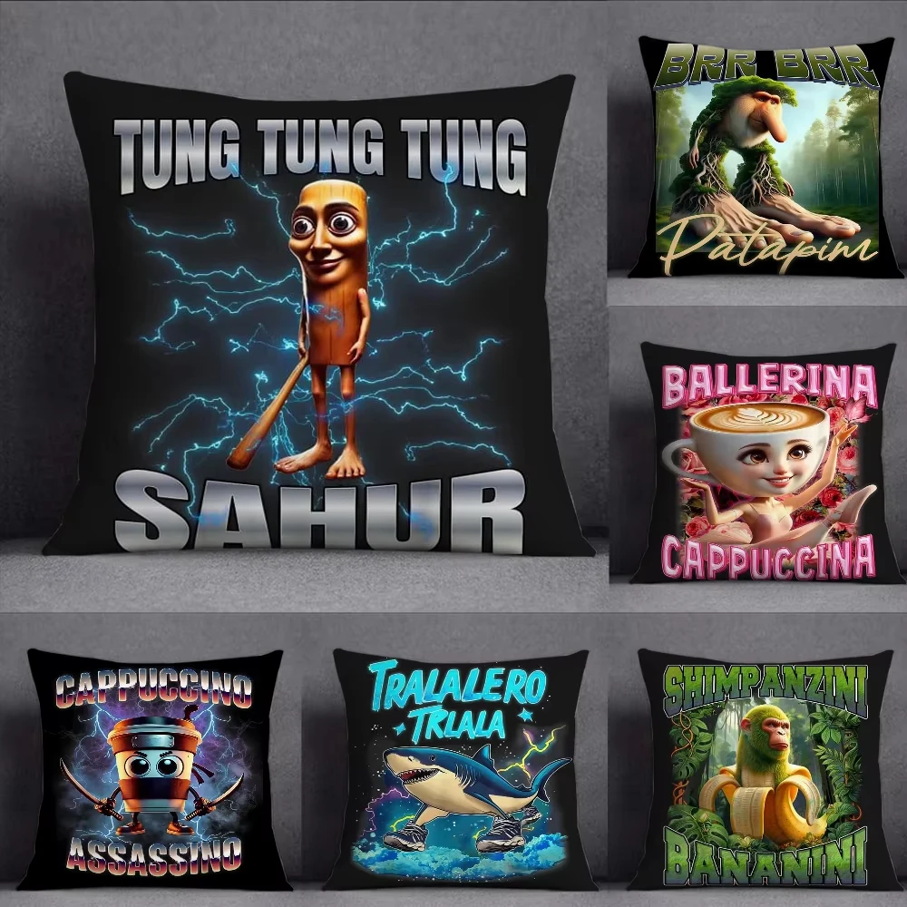 Tung Tung Tung Sahur Tralalo Italan Brainrot Pillow Case Double-sided Print Square Pillow Bedroom Room Decoration Pillowcase