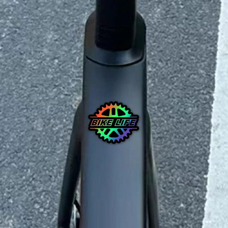1PC "BIKE LIFE" Bicycle Stickers - Black - White & Holographic Color Styles with Gear Design