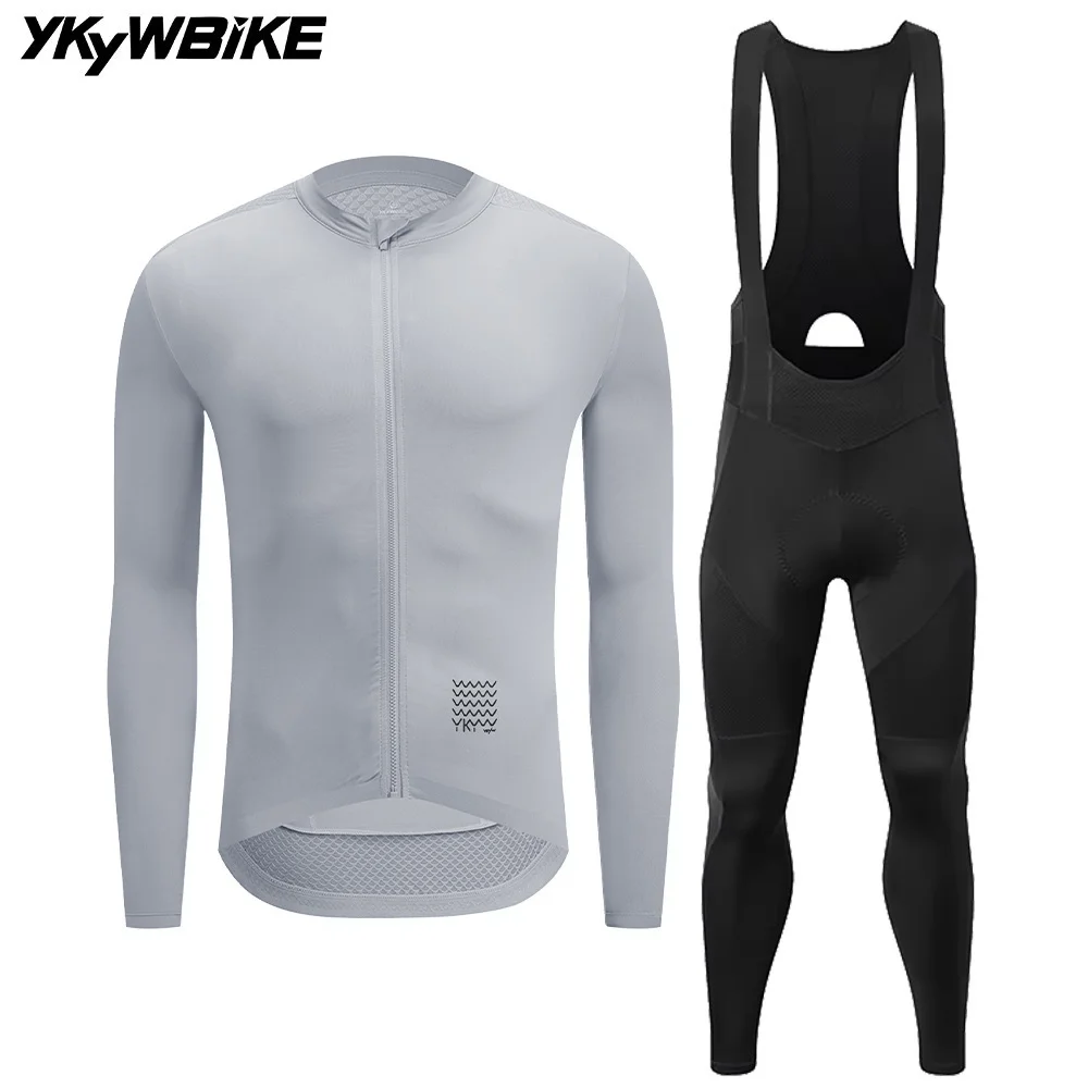 YKYWBIKE Men's Cycling Clothing Spring Summer Road Bike Set Long Sleeve Jersey Bib Tights Bicycles riding Jersey Suit