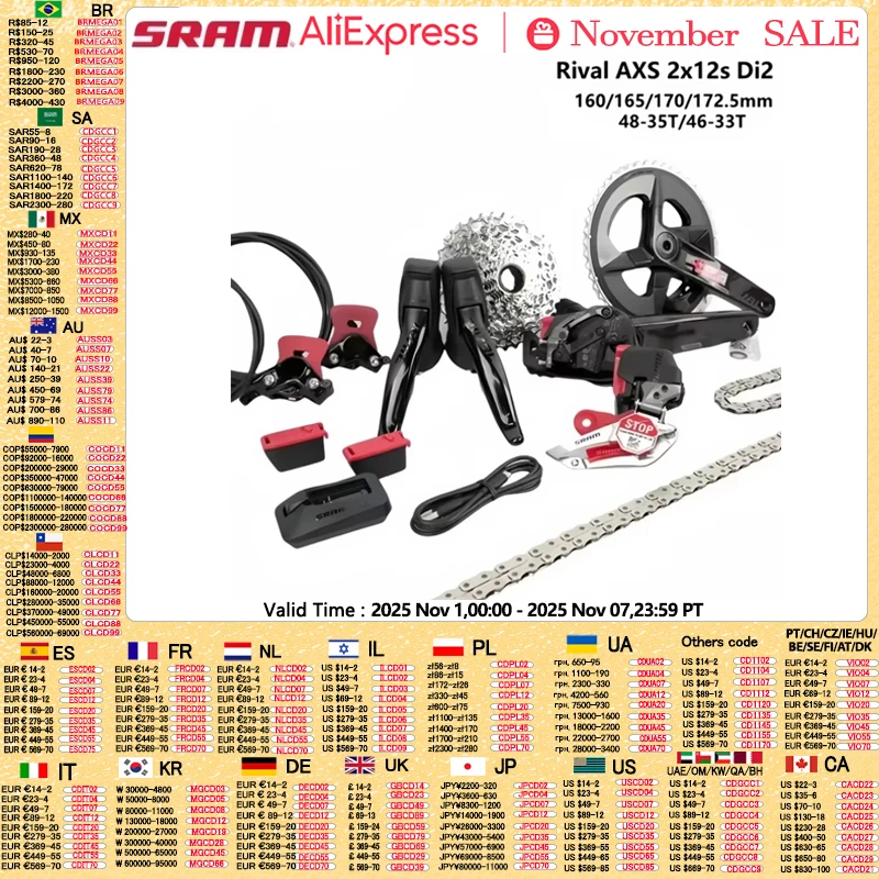 Sram RIVAL AXS Electronic Shift Wide Model 2x12s 160MM 165MM 170MM 172.5MM 48-35T/46-33T ETAP 12Speed Derailleur Road Groupset