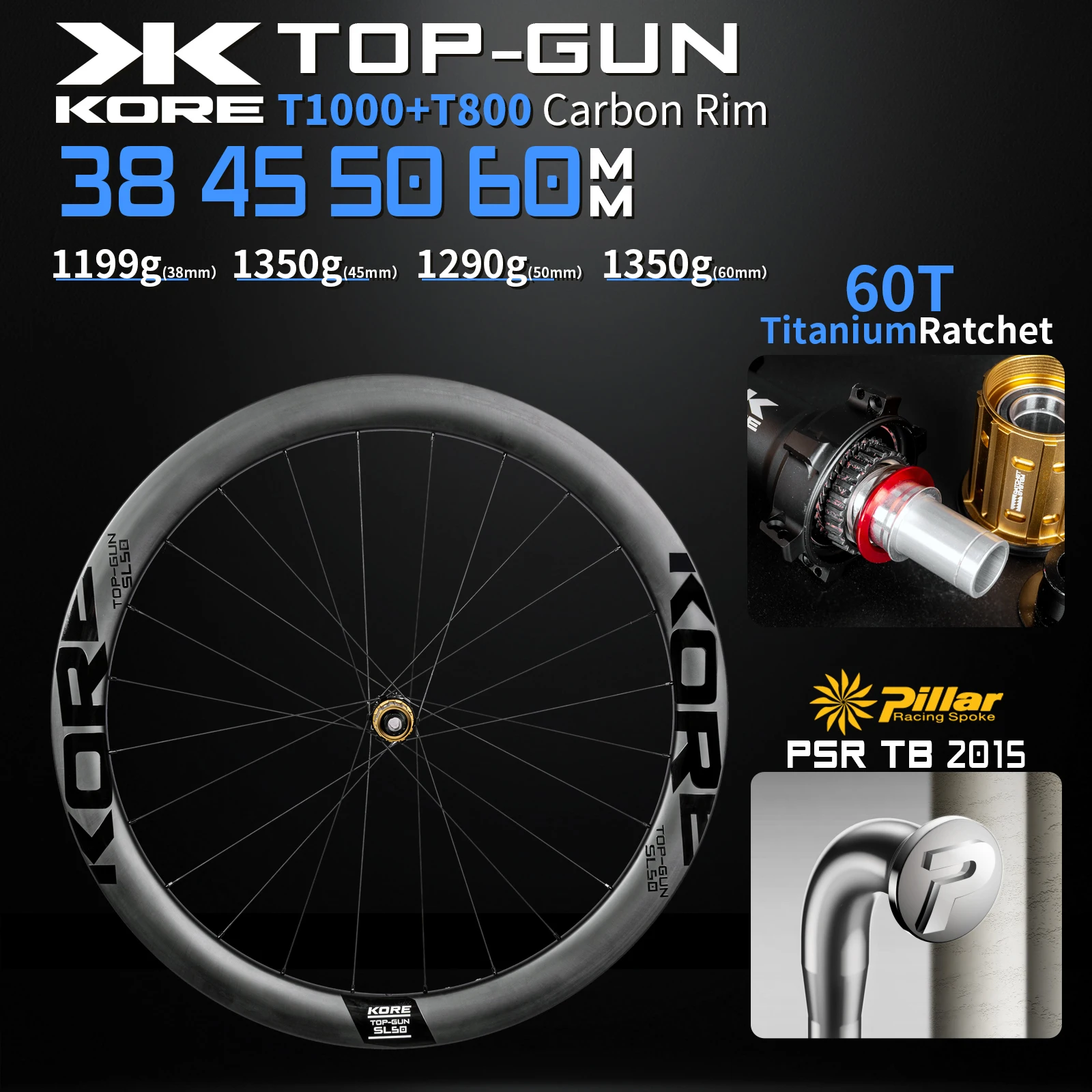 KORE Road Bicycle Wheelset 60T Titanium Ratchet Hub 38/45/50/60MM 700C T1000 Carbon Road 24H Pillar 2015 Road Racing Wheelset