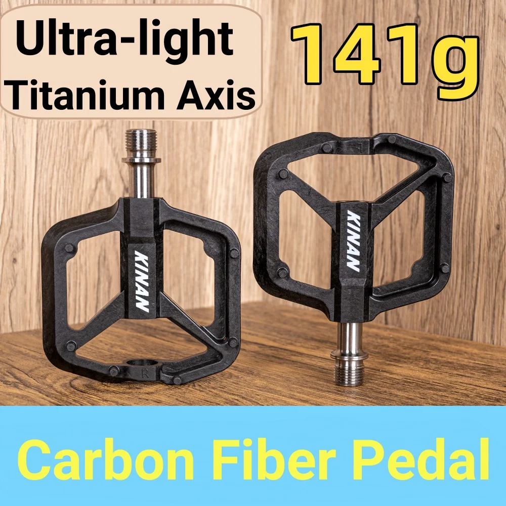 KINAN Bicycle Carbon Pedals 4 Bearings 141G Ultralight Titanium Axis with 12 Screws For Road Bike MTB Cycling Accessories