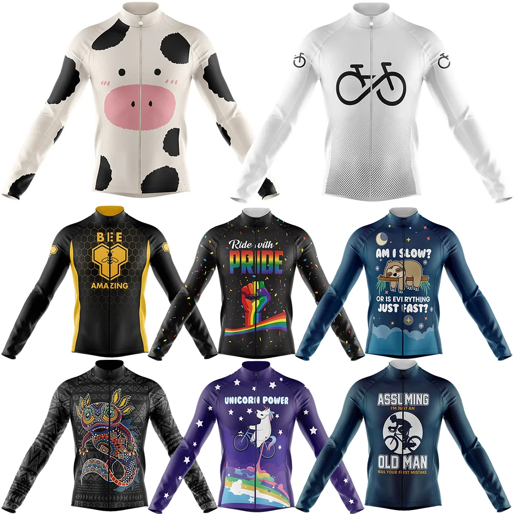 Cow Cycling Jersey for Men MTB Jersey Bicycle Team Cycling Shirt Long Sleeve Bike Wear Premium Cycle Clothes, New, 8 Styles