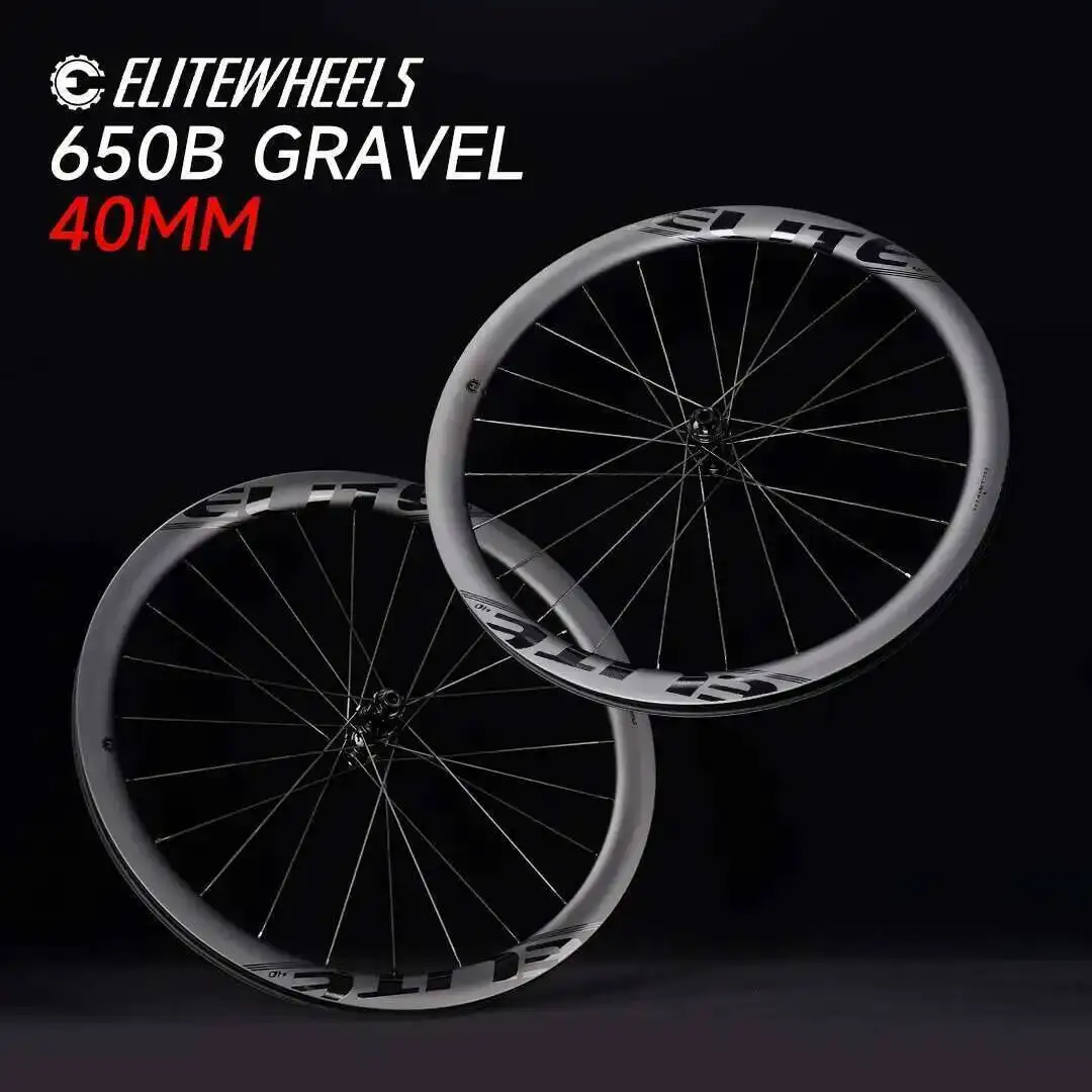 ELITEWHEELS 650B Gravel Wheelset Road Disc Carbon Wheels 40x32mm Tubeless Ready Ceramic Bearing / Ratchet System