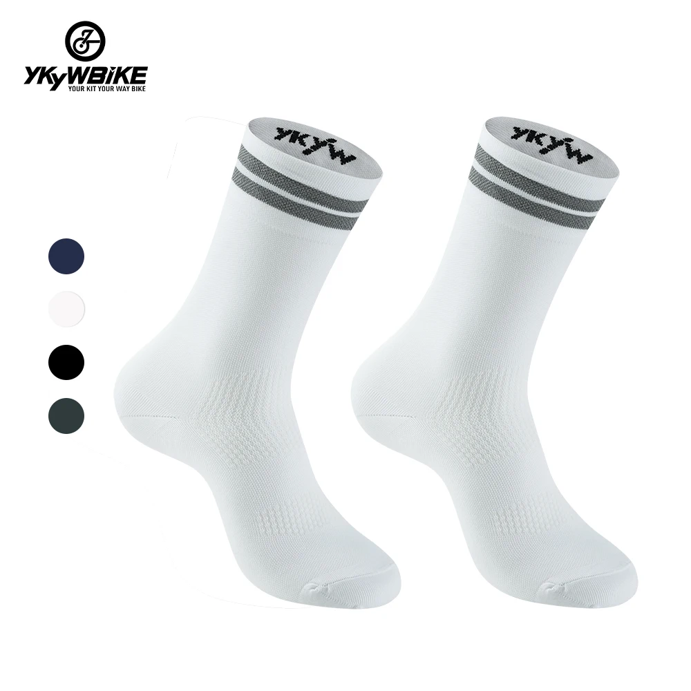YKYWBIKE Cycling Socks Reflective Stripe Compression Men Bike Socks for Sports Running Road Bicycle Racing Riding